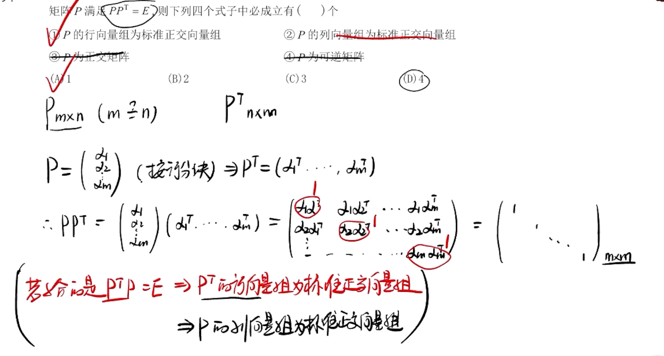 (2021, 数农) 设n维列向量组 线性无关,则n维列 向量组 线性无关的充分必要条件为( )