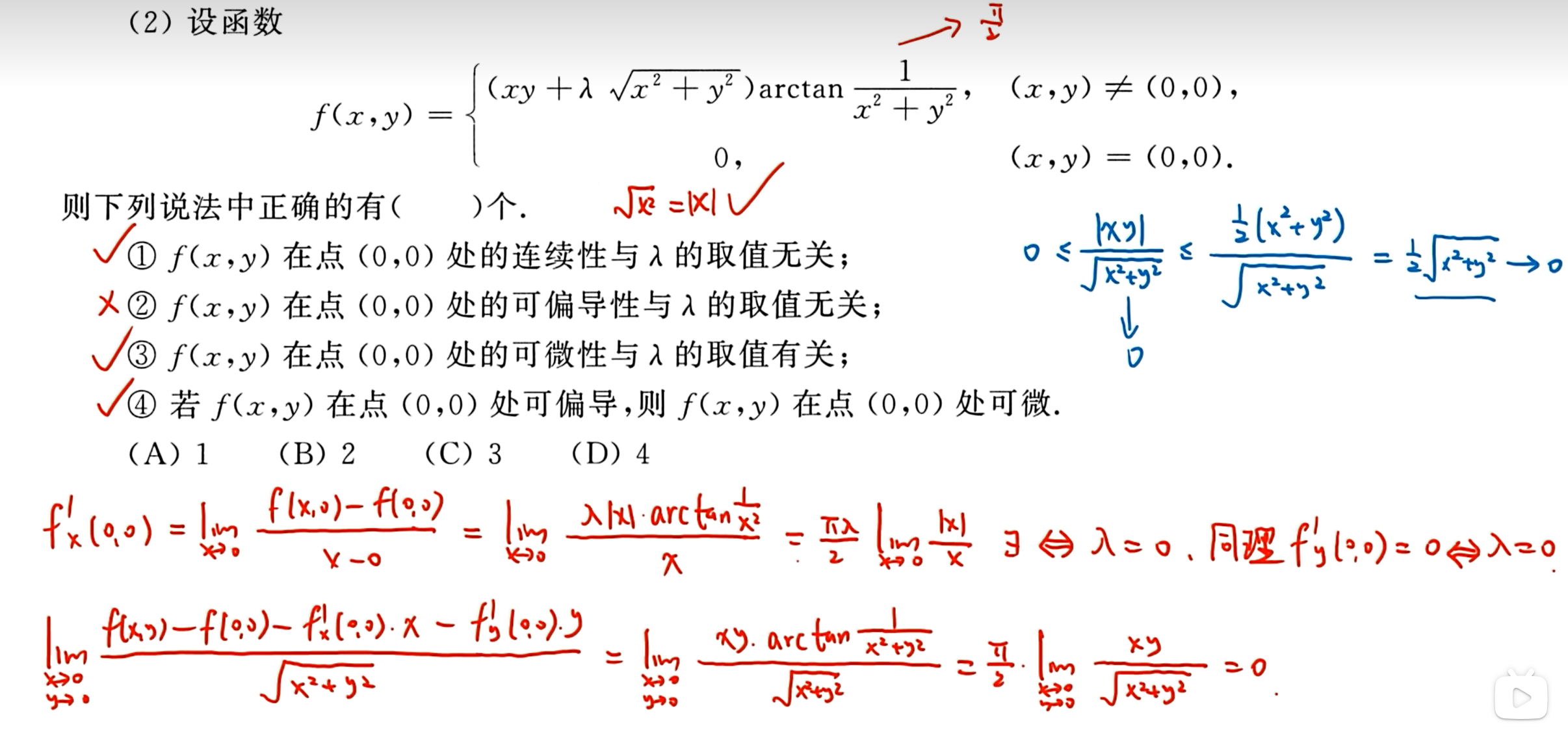 设 g(x) 有连续的导数, g(0)=0, g′(0)=a≠0, f(x,y) 在点 (0,0) 的某邻域内连续,则