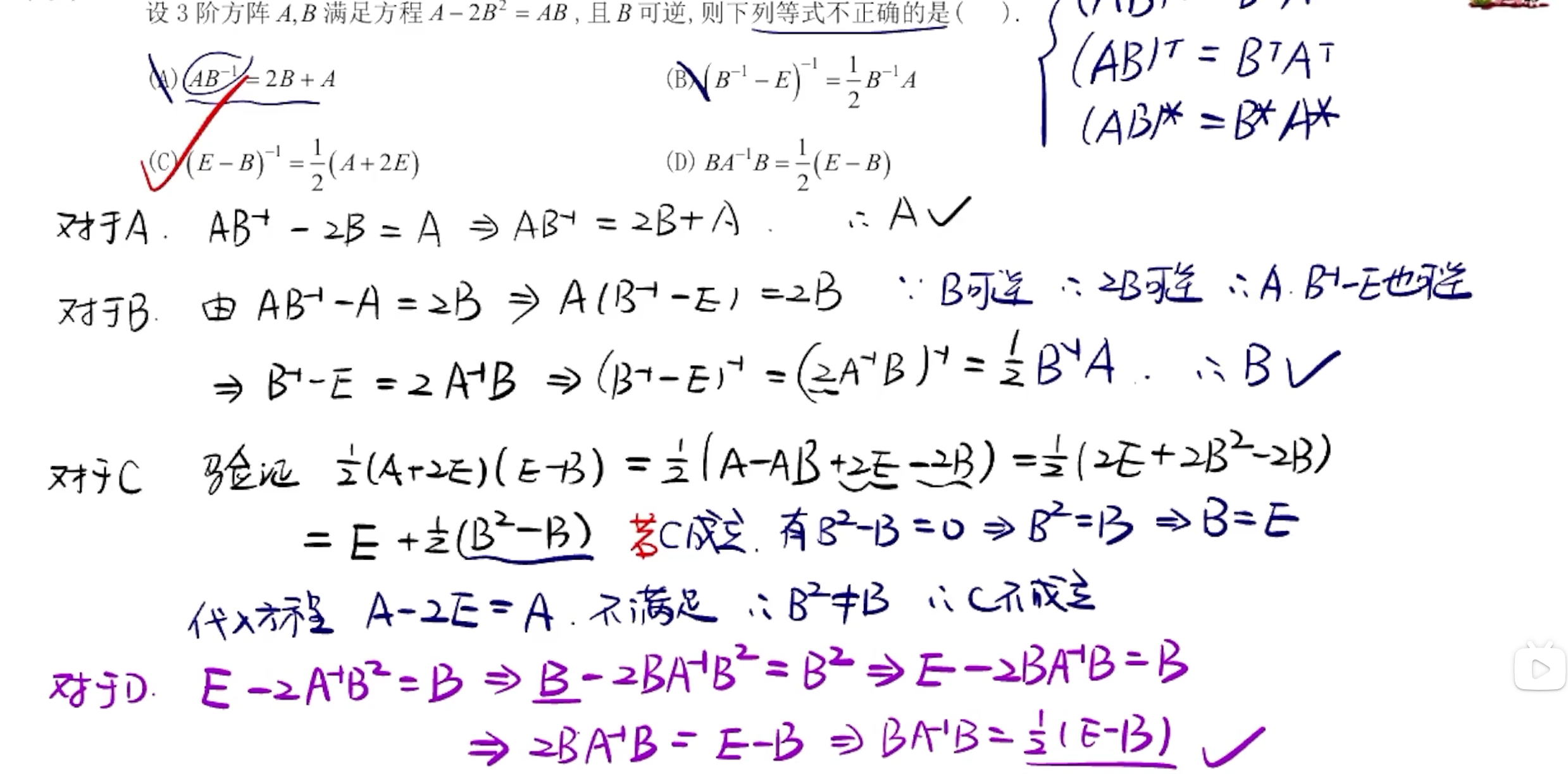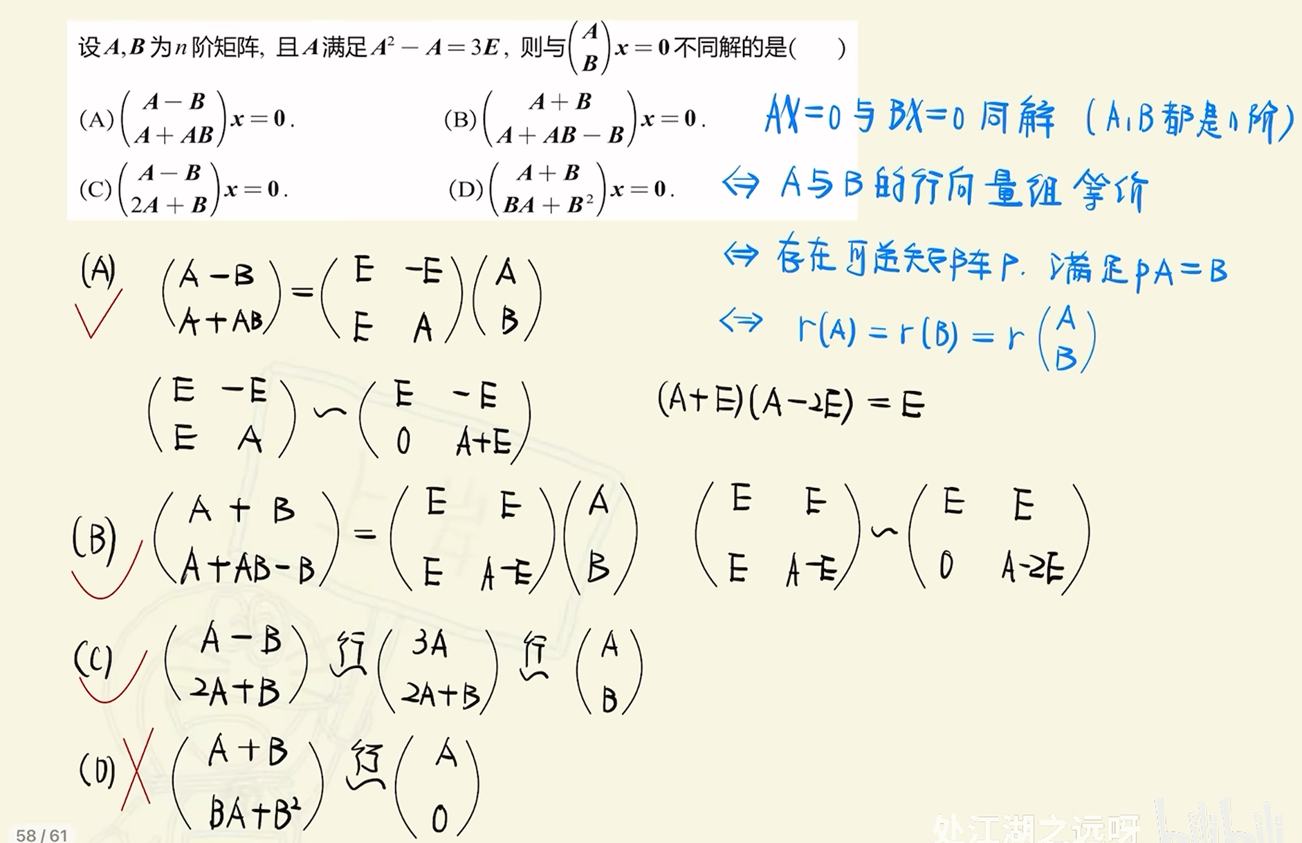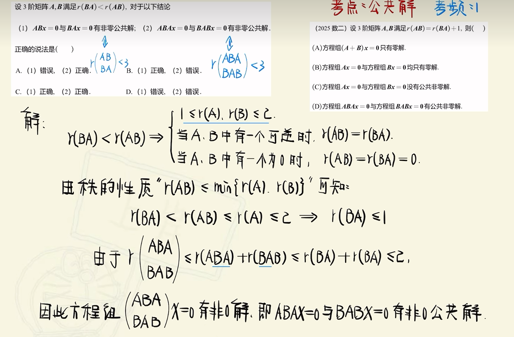 左列右行 ==> ==> AB线性无关与题设矛盾